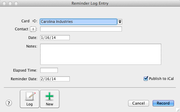 The reminder log enable you to keep a detailed log of all the phone calls you and your contacts make to each other, and any other type of correspondence.