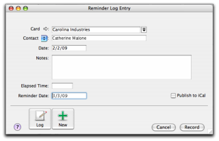 The reminder log enable you to keep a detailed log of all the phone calls you and your contacts make to each other, and any other type of correspondence.