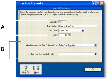 If a tax rate changes or if you wish to link a tax code to a different account, you can change the tax code information.