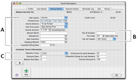 The selections you make here will be used, by default, on quotes, orders, and invoices that you create for this customer. You can override these selections when recording the sale.