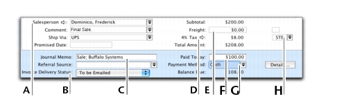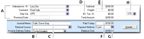The fields that appear at the bottom of the Sales window depend on the type of sale you are creating.