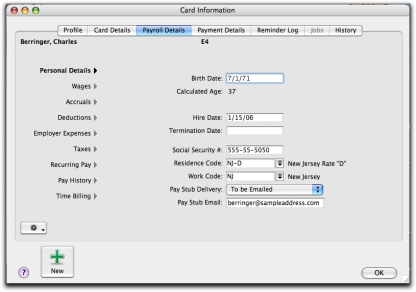 If you use the Time Billing function to track the time the employee spends to complete work for clients and customers, click Time Billing and type the employee’s time billing rate and cost per hour. .