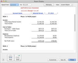 The Jobs Profit & Loss report has been revised to give you the ability to customize the report over the span of multiple fiscal years.
