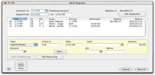 You can use the Bank Register window to find spend money, pay bills, receive payments, and receive money transactions.