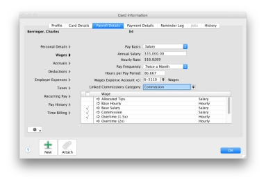 Click the Employee tab and select the employee you want to assign a commission rate to and click Edit or click New to create a new employee card. The Card Information window appears.