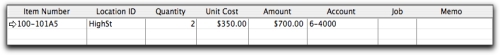 The Amount field displays the quantity multiplied by the unit cost. If you change it, the unit cost is recalculated automatically.