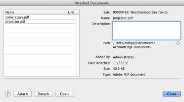 Click Attach. The Attached Documents window appears.