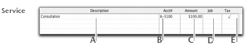 The scrolling list in the middle of the Purchases window is where you enter details of what you are buying. In this area, you will enter item numbers, descriptions, account numbers (or account names, depending upon your selection in the Preferences window), and other information about your transaction.