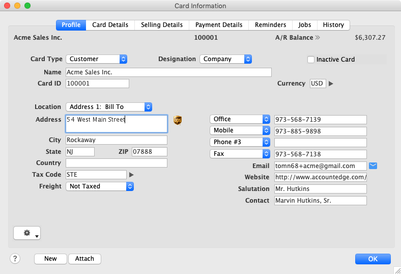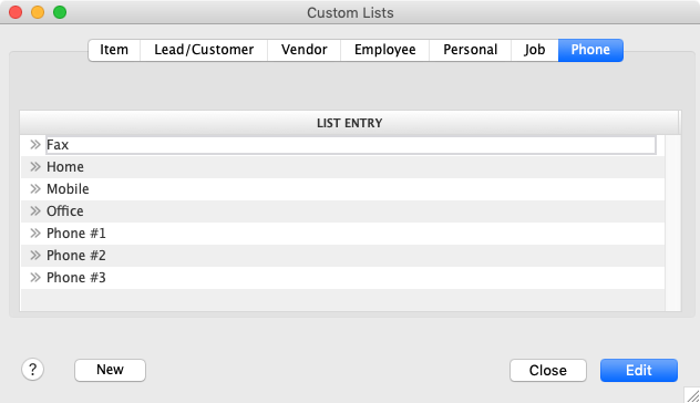 Within the Card File on a contact you have 3 phone numbers and a fax number per address/contact associated with a customer, vendor, employee, etc. You can now assign a field label using one of our own including Mobile, Fax, Home, Work or create you own and assign it to a contacts phone number.
