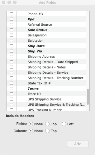 You can now add additional fields to your sales forms including invoices, orders, packing slips, etc. to include information around shipping. These fields correspond to those in the Shipping Details window on a sale.