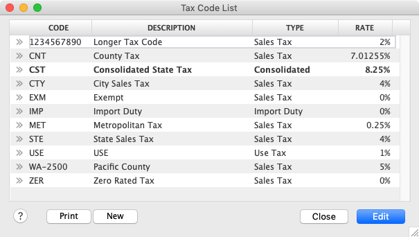 For states that have many sales tax regions that require many sales tax codes to be created, we've extended the length of tax codes out to 10 characters. This can also be helpful in naming your tax codes to make it easier to manage and choose the correct code.