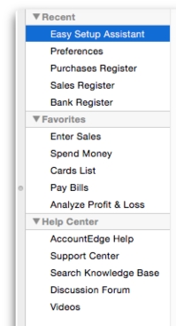 The Favorites section will display an unlimited list of windows and reports you choose.