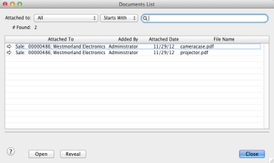Click Attach. The Attached Documents window appears.