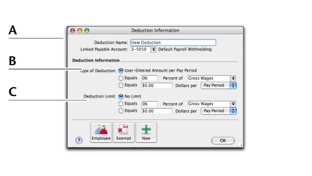 Linked Payable Account is the account (usually a liability account) in which all the deducted money will be accrued. The Default Withholding Payable Account you specified when setting up payroll appears as the default. You should change this default if you want to track the deduction separately. For example, if you are deducting union fees, create a Union Fees Payable liability account. This way, the balance sheet will display the deductions separately from your taxes and other deductions.