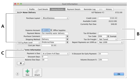 Click the Card Details tab. You can enter notes about the vendor, insert a picture, and assign attributes to group and sort the card. You can also assign a commission rate to the card.